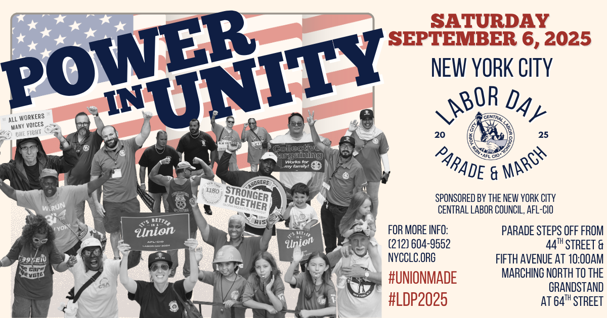 Saturday, September 6, 10AM: Join the New York City Central Labor Council, AFL-CIO for the nation’s biggest and oldest Labor Day Parade! Tens of thousands of workers from over 200 unions and constituency groups will march up NYC's famed Fifth Avenue, from 44th to 64th Street, in a powerful display of solidarity and pride.