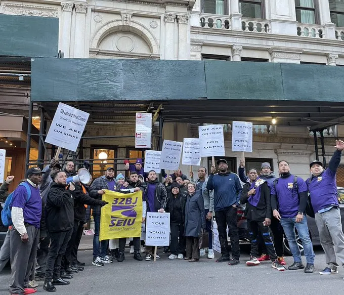 32BJ Members on Strike at 108 Leonard in Manhattan