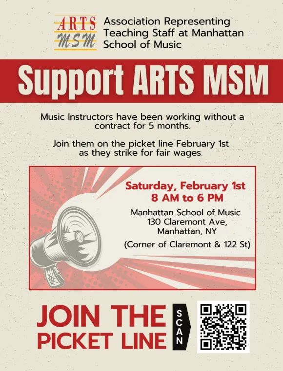 ARTS-MSM/NYSUT/AFT to Strike Manhattan School of Music February 1