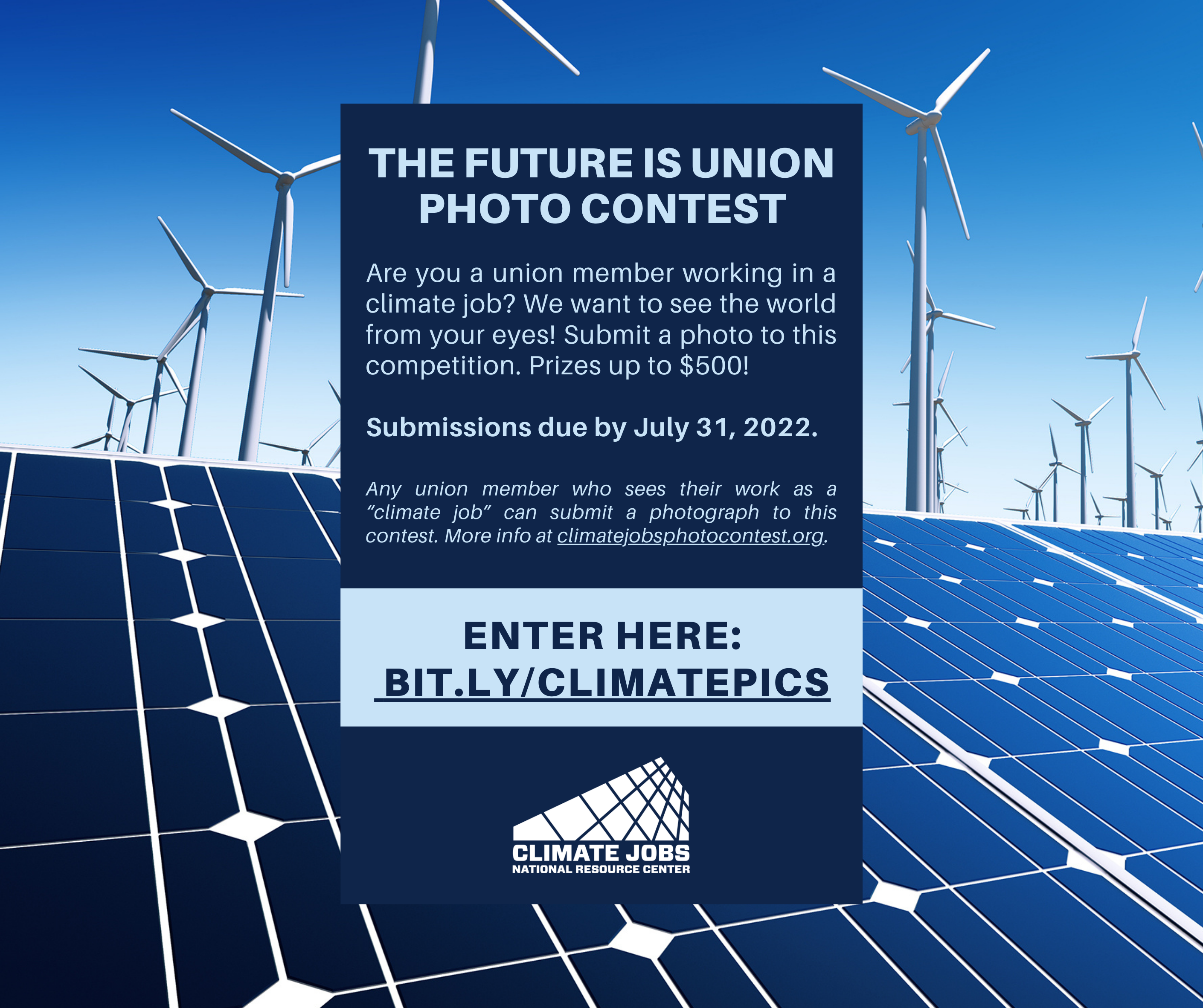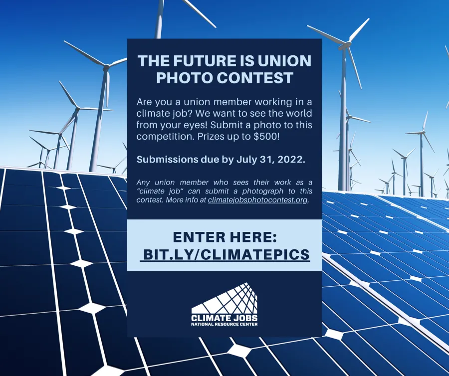 Are you a union member working in a climate job? Climate Jobs National Resource Center's nationwide photography contest, The Future Is Union: Climate Urgency Through the Eyes of Workers is still open.