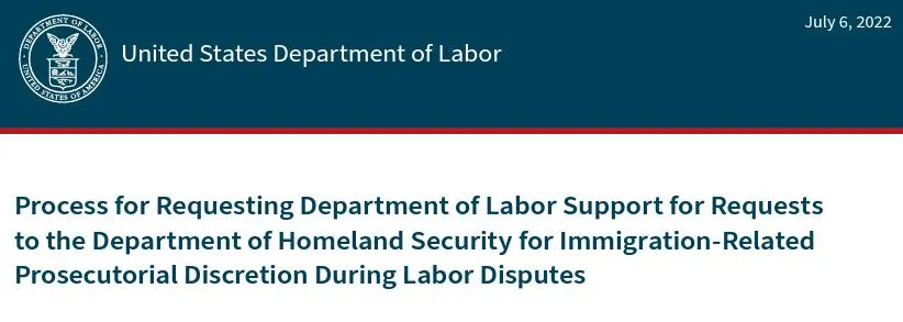 DOL Posts Process For Seeking Support For Immigration-Related Prosecutorial Discretion During Labor Disputes