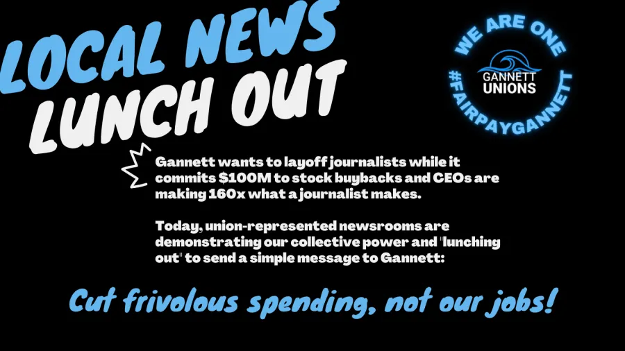Unionized Gannett journalists across the country say the financial austerity at Gannett is a result of financial mismanagement on the part of the company and cannot be solved by further staffing cuts. The NewsGuild-CWA represents more than 50 Gannett-owned newsrooms across the country. Over half of those newsrooms participated in the “lunch out.”