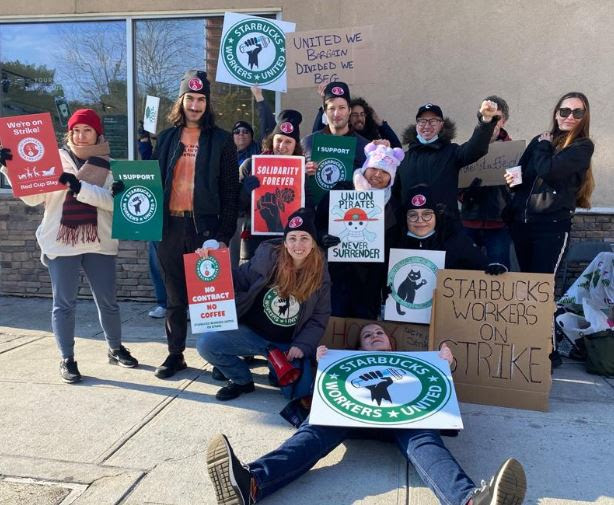 Yesterday, Starbucks Workers at 100+ stores across the country including seven stores here in NYC also participated in #RedCupRebellion, a one day Unfair Labor Practice strike in response to the company’s failure to bargain in good faith. Workers have been waiting almost 12 months for progress in bargaining, and most stores have waited 6 months or more. There are over 250 unionized Starbucks locations, and yet Starbucks has only met with a small handful, and are now walking out of negotiations after mere minutes.