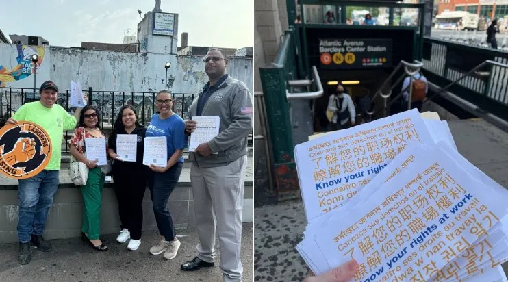 On Wednesday, NYC CLC staff joined NYC's Department of Consumer and Worker Protection, the Mayor's Public Engagement Unit, the City Commission on Human Rights, RWDSU, LiUNA Local 1010, Bricklayers and Allied Craftworkers Local 7, the Worker's Justice Project, Los Deliveristas Unidos, La Colmena, and more to participate in a Workers’ Rights Day of Action. Stationing at transit locations across the five boroughs we were able to meet more than 10,000 New Yorkers and provide them with essential information about workers' rights in NYC. Read the multilingual, comprehensive guide on the city, state, and federal rights that protect NYC workers here!