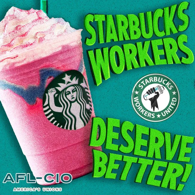 The letter coincided with a Global Starbucks Union Day of Action, in which Starbucks Workers United, Workers United, SEIU 32 BJ, and other organizations sent 1 million messages to the coffee company in support of union workers. More than 296 Starbucks stores, covering more than 7,500 workers, have voted to unionize. Read more in Fast Company!