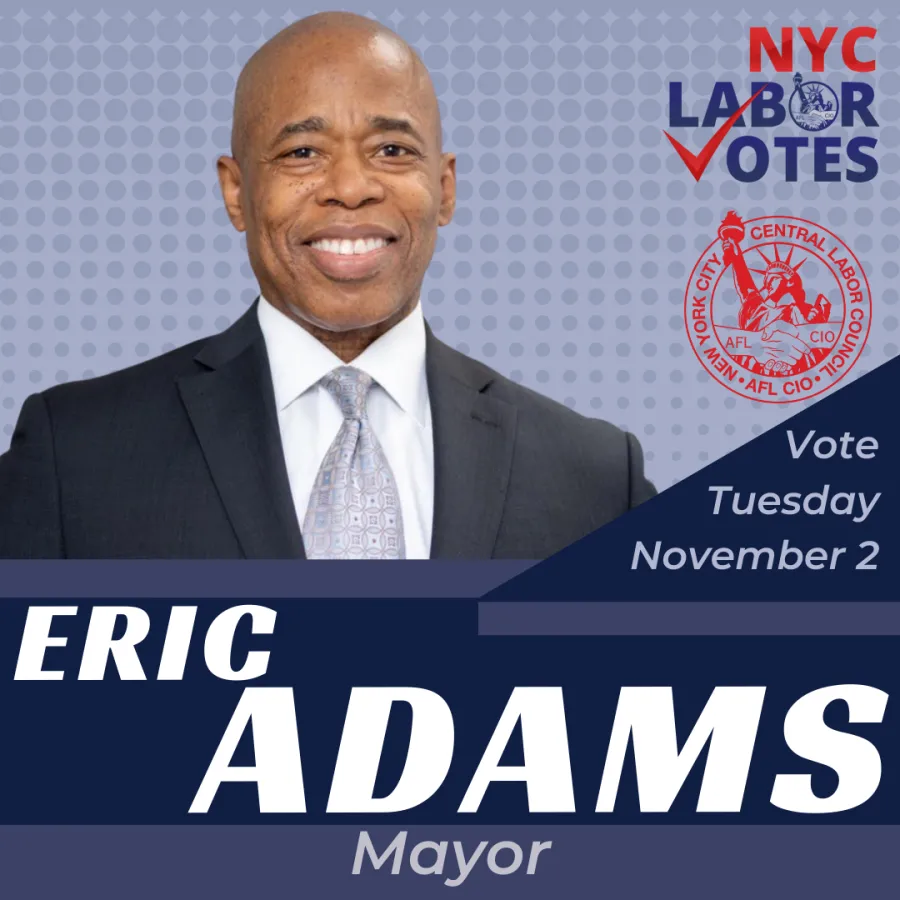 “Eric Adams has long been a champion of working people in New York City, and we know that he has what it takes to work with us to revive our city’s hard-hit industries, protect jobs and critical city services, and build a resilient economy that works for all working people,” said NYC CLC President Vincent Alvarez.