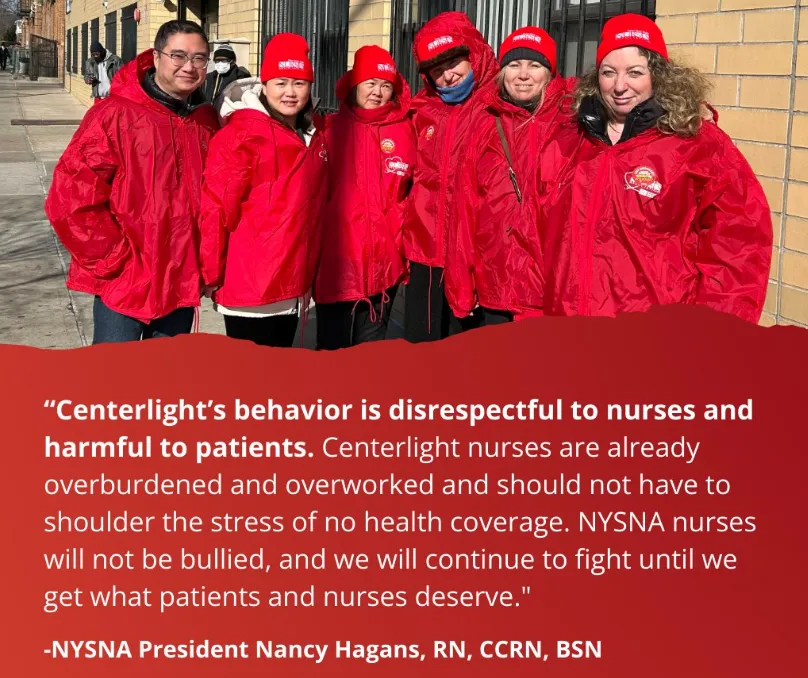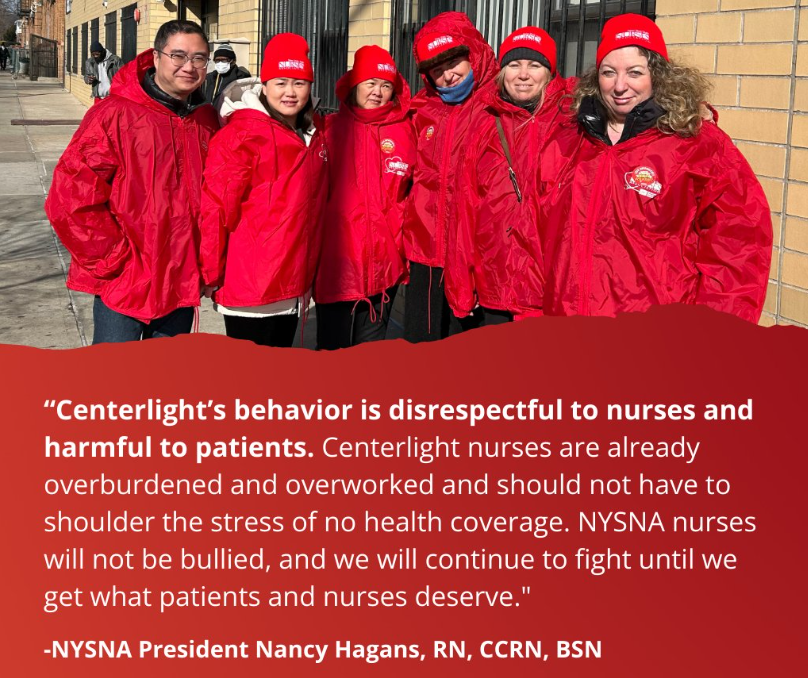 NYSNA Nurses at CenterLight Deliver Unfair Labor Practice Strike Notice, Demand Reinstatement of Health Coverage and a Fair Contract