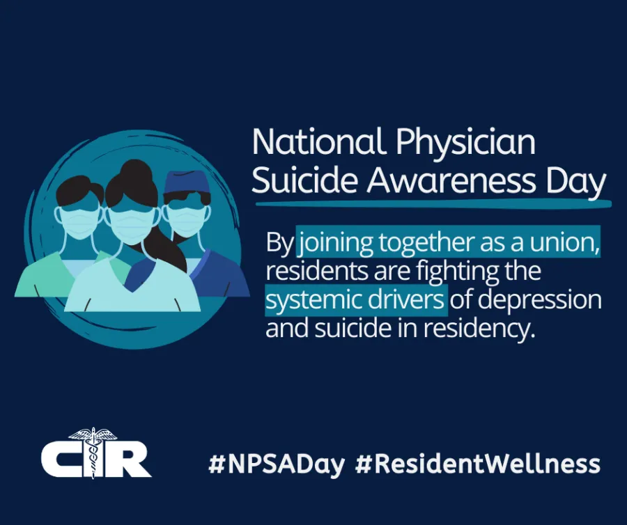 On Physician Suicide Awareness Day, the Committee of Interns and Residents honors the lives of healers lost to suicide and commits to fighting for systemic change. In New York, NYC Health + Hospitals resident physicians are organizing through the Committee of Interns and Residents and demanding change to the root drivers of resident burnout, depression, and suicide at a historic NYC Council hearing on September 24, 2021. Long before the COVID-19 crisis, rampant long work hours, cultures of hazing and bullying, student debt and a lack of mental health services in residency put these frontline physicians in danger across the country. It’s time to care for the people who care for us. Follow @cirseiu on Facebook and Instagram for more info about how to stream the hearing.