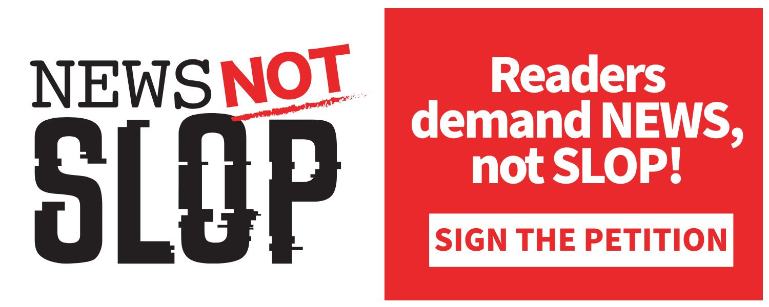 You deserve coverage of the news you care about by human beings. Not AI slop. Stand with journalists and media workers to ensure that you continue to receive high quality, accountable reporting. Join the NewsGuild-CWA. Support real journalists, and take the pledge to tell news organizations that you don’t want AI slop in the newsroom!
