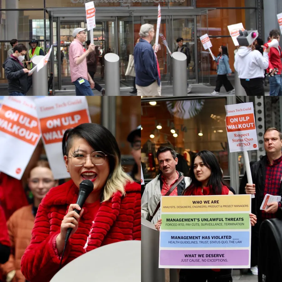 “The Times is now not only refusing to recognize our rights to bargain on return to office but is now going a step further and using it as a tactic to intimidate us,” said Kathy Zhang, unit chair for the Tech Guild. “This afternoon's work stoppage is to send The Times' senior leadership a strong, unmistakable message: We will not stand by and allow you to trample on our rights.” Read more here!