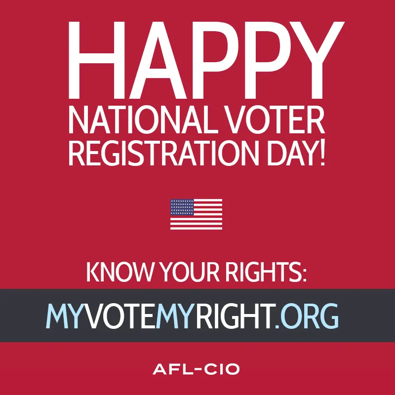 Today is National Voter Registration Day! Verify your registration status and make sure all of your eligible family members and friends are registered to vote. Confirm your polling place, ask for help if necessary, and make your plan to vote! Know your voting rights!