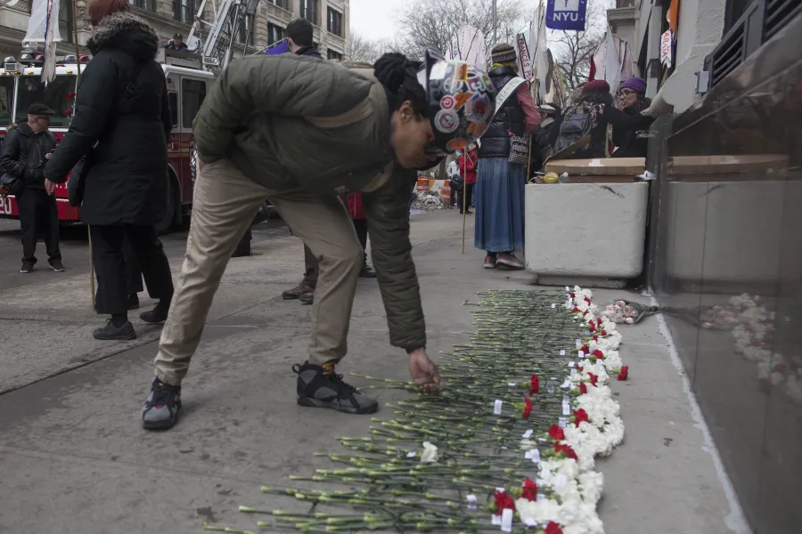 Today unions, community groups, and elected officials gathered outside of NYU's Brown Building to remember the 146 worker lives lost during the Triangle Shirtwaist Factory 106 years ago.