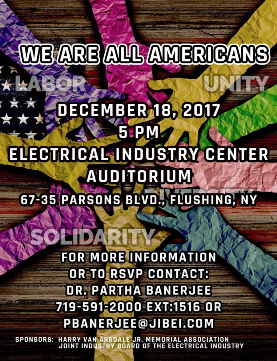 On Monday, December 18th, the Harry Van Arsdale, Jr. Memorial Association, the Joint Industry Board of the Electrical Industry, and Congressman Joe Crowley will sponsor “We Are All Americans,” an open forum to create solidarity across the labor and immigrant communities.