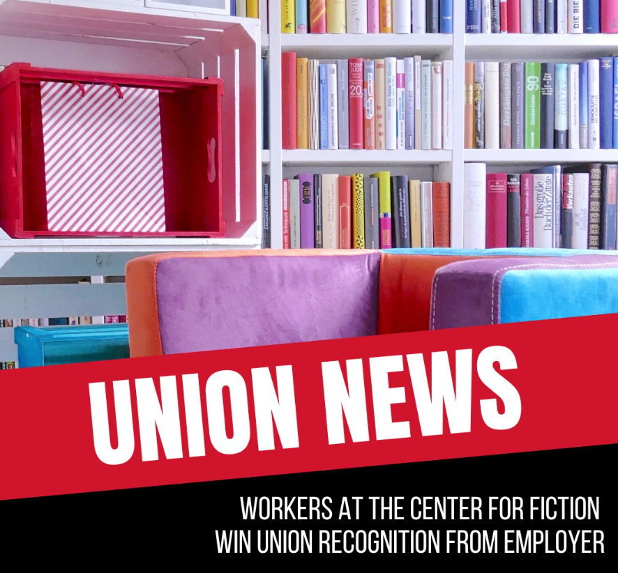 “As writers, artists, community members and workers we are proud that The Center for Fiction has voluntarily recognized our union. We know the positive impact that collective action contributes towards fair wages, transparent contracts, and collaborative communication and we are eager to see it reflected at the negotiation table. We look forward to making The Center a fair, welcoming, and empowering space for all,” said Henri Seguin, a bookseller at The Center for Fiction. Read more here!